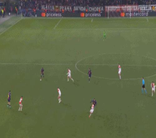 第64分钟,奥尔莫世界波远射破门,巴萨3-2布拉格斯拉维亚
